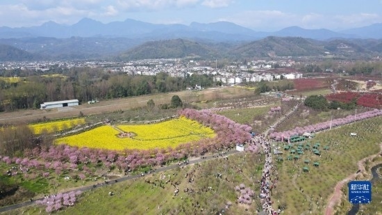 這是3月8日拍攝的都江堰市青城山鎮(zhèn)“問花村”景色(無人機照片)。