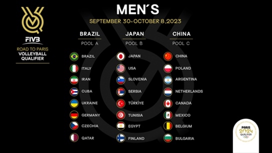 男排資格賽將于2023年9月30日至10月8日分別在中國(guó)、日本和巴西舉行,分組抽簽規(guī)則與女排相同。經(jīng)過抽簽,A組球隊(duì)分別是巴西、意大利、伊朗、古巴、烏克蘭、德國(guó)、捷克、卡塔爾;B組為日本、美國(guó)、斯洛文尼亞、塞爾維亞、土耳其、突尼斯、埃及、芬蘭;中國(guó)與波蘭、阿根廷、荷蘭、加拿大、墨西哥、比利時(shí)和保加利亞分在C組。