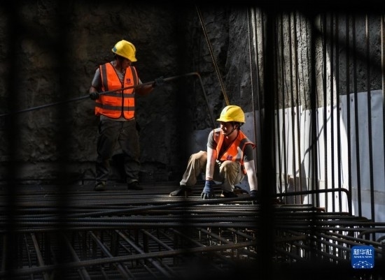 5月1日,在成都地鐵27號線一期工程項目花照壁北站施工現(xiàn)場,中建三局的工人在施工。