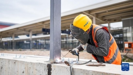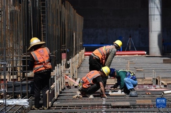 5月1日,中鐵建工集團工人在貴州貴安新區(qū)貴安站擴建項目工地施工。