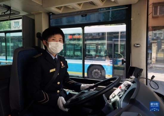 5月1日,在位于北京市朝陽區(qū)的柳芳公交場站,104路公交車駕駛員高國然駕駛車輛準(zhǔn)備駛出。