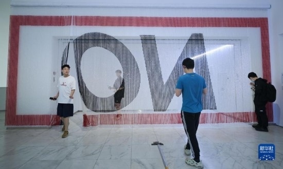 5月9日,參觀者在展覽現(xiàn)場觀賞參展作品《ON》。