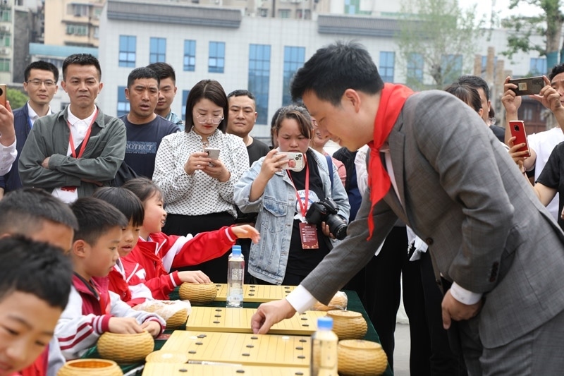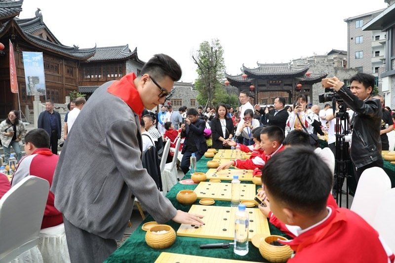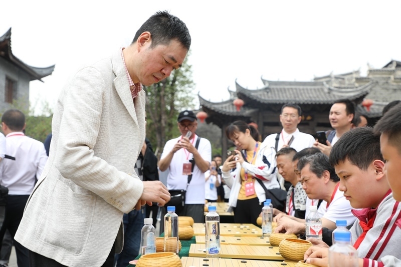 人民網(wǎng)銅仁5月15日電 (記者李乃妍)5月14日,第十屆中國(guó)女子圍棋甲級(jí)聯(lián)賽希望教室捐贈(zèng)儀式和指導(dǎo)棋活動(dòng)在銅仁市梵凈書(shū)院進(jìn)行,中國(guó)圍棋協(xié)會(huì)主席林建超等出席活動(dòng)并發(fā)言。世界冠軍古力、孔杰、馬曉春等與當(dāng)?shù)匦∑逋轮笇?dǎo)棋。