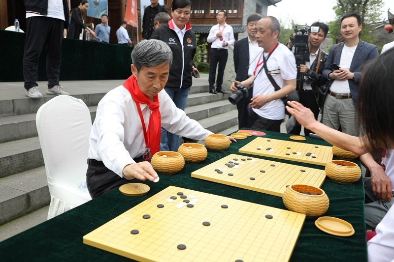 中國(guó)圍棋協(xié)會(huì)原主席王汝南下指導(dǎo)棋。人民網(wǎng)記者 李乃妍攝
