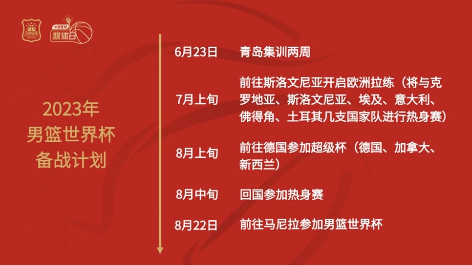 談到中國男籃備戰(zhàn)世界杯的具體規(guī)劃時,徐濟成表示:“球隊將于6月23日在青島開啟為期兩周的集訓;7月上旬前往斯洛文尼亞開啟歐洲拉練,將與克羅地亞、斯洛文尼亞、埃及、意大利、佛得角、土耳其幾支國家隊進行熱身賽;8月上旬前往德國參加超級杯,對手包括德國、加拿大、新西蘭;8月中旬回國參加1-2場熱身賽后,將前往馬尼拉參加男籃世界杯?!?/p>