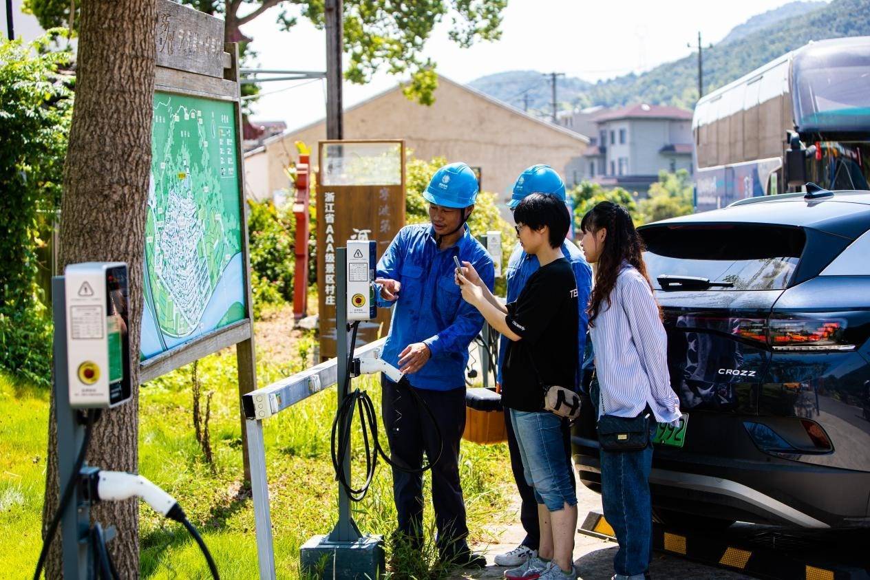 國家電網(wǎng)浙江寧波供電公司員工為電動車主提供現(xiàn)場充電指導(dǎo),引導(dǎo)往來車輛有序充電,為綠色旅行提供全方位服務(wù)。胡云杰/攝