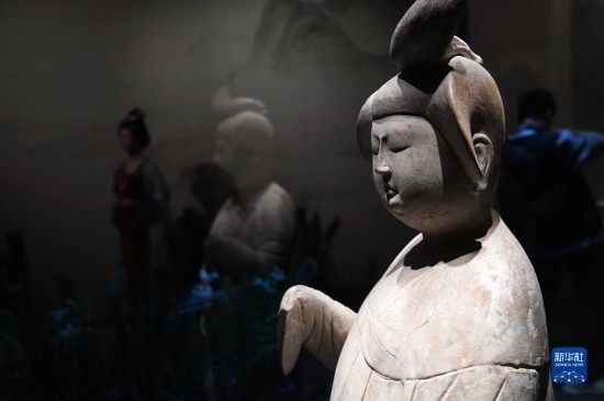 這是在西安博物院《長安有故里——絲路少年大唐行》展覽上展出的女立俑(5月22日攝)。