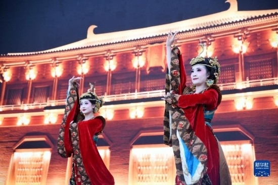 5月22日晚,舞蹈演員在2023陜西“博物館與美好生活”文博之夜活動(dòng)上表演唐樂舞大曲《團(tuán)亂旋》。