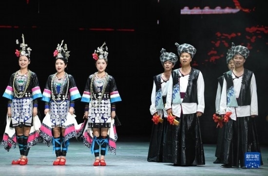 6月5日,演員在貴陽大劇院的《多彩貴州風(fēng)》演出中表演節(jié)目《金繡銀飾》。