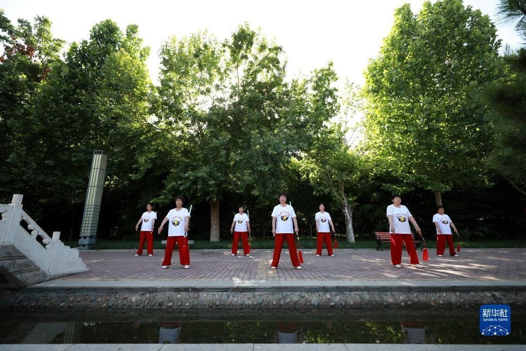6月9日,太極拳愛(ài)好者在河北省邢臺(tái)市任澤區(qū)人民廣場(chǎng)展示王其和太極拳。