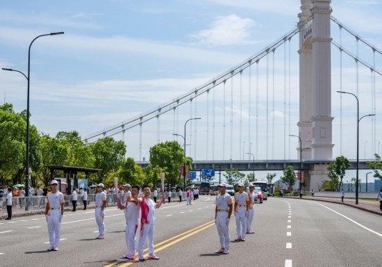 杭州第19屆亞運會舟山站火炬?zhèn)鬟f專項組常務副組長李進城介紹,整個線路全程融入了海、港、船、橋等多種海洋元素,通過現(xiàn)代與歷史的交錯融合、文旅味與山海味的交相輝映,全方位展現(xiàn)了“海上花園城 自由貿易港”的大美場景。
