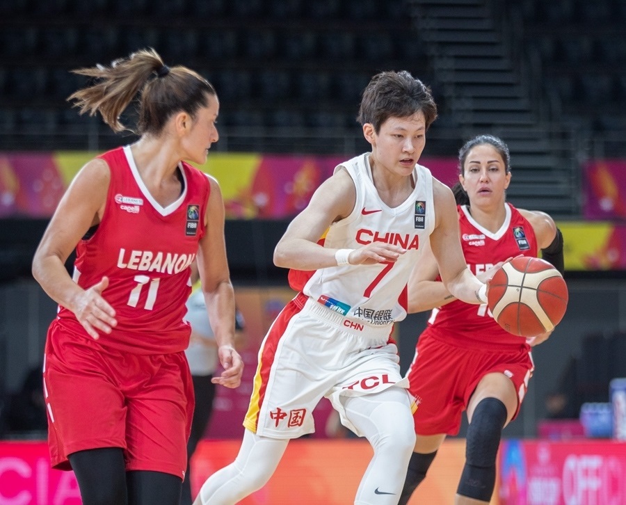 女子籃球運(yùn)動員楊力維(中)
