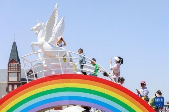 7月16日,游客在昭蘇縣天馬旅游文化園游玩。