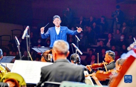 指揮普布次仁指揮樂隊(duì)演奏《我的祖國》(7月18日攝)。