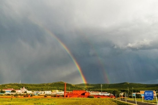 這是8月31日拍攝的阿爾山市的彩虹(無(wú)人機(jī)照片)。