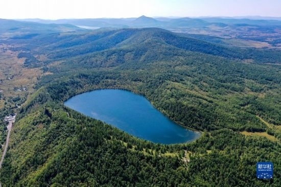 這是8月31日拍攝的阿爾山國(guó)家森林公園阿爾山天池景色(無(wú)人機(jī)照片)。