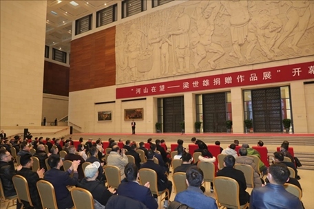 2023年12月12日,由中國(guó)國(guó)家博物館和中共廣東省委宣傳部共同主辦的“河山在望——梁世雄捐贈(zèng)作品展”展覽開(kāi)幕式在中國(guó)國(guó)家博物館舉行。文化和旅游部黨組成員、副部長(zhǎng)盧映川出席并宣布展覽開(kāi)幕。中國(guó)國(guó)家博物館館長(zhǎng)王春法、廣東省委宣傳部常務(wù)副部長(zhǎng)崔朝陽(yáng)、家屬代表容璞老師在開(kāi)幕式上致辭。開(kāi)幕式由中國(guó)國(guó)家博物館黨委書記楊帆主持。