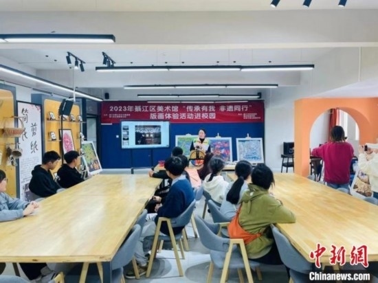 圖為綦江農(nóng)民版畫(huà)走進(jìn)校園活動(dòng)現(xiàn)場(chǎng)。 綦江農(nóng)民版畫(huà)院 供圖