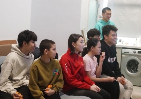 “這是第一次離開爸爸媽媽、離開家鄉(xiāng),和隊(duì)友、教練一起過新年。很興奮,但也很想爸爸媽媽。昨天和大家一起吃了豐盛的年夜飯,還和爸爸媽媽視頻,分享了我的新年?!迸取ぐ⒌亓φf。