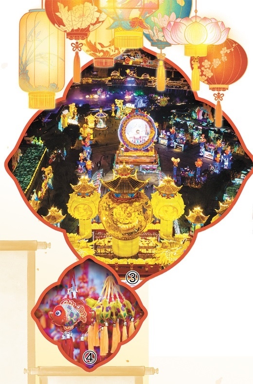 | 圖③:在四川省自貢市中華彩燈大世界舉辦的第三十屆自貢國(guó)際恐龍燈會(huì)亮燈。新華社記者 沈伯韓攝 圖④:在山東省濟(jì)寧市嘉祥縣,富有創(chuàng)意的裝飾掛件營(yíng)造出濃郁的喜慶氛圍。姚 燁攝(人民視覺(jué)) |