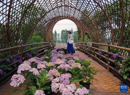 初夏時(shí)節(jié),上海市青浦區(qū)練塘鎮(zhèn)東厙村舉行首屆繡球花節(jié)。繡球花裝點(diǎn)著古橋、村居、小路,令歷史悠久的江南鄉(xiāng)村別具韻味,吸引眾多游客前來賞花游玩。