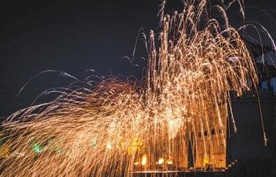 碎炭、起火、熔鐵、揚水、打花……夜晚,在河南開封清明上河園景區(qū),一場流光溢彩的“打鐵花”民俗文化表演正在上演(見圖,受訪者供圖)。隨著1600攝氏度的鐵水在夜空中幻化成漫天的“星光”,絢爛、璀璨,瞬間驚艷全場,現(xiàn)場觀眾由衷發(fā)出陣陣驚嘆。而這一巧奪天工的“重金屬藝術”正是開封打鐵花第二十二代傳承人劉小松及其團隊的作品。