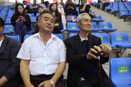 拄著拐杖,邁著略顯蹣跚的步伐,81歲的李順在兒子李德文的幫助下,來到看臺(tái)坐下來。當(dāng)被問到喜歡哪支隊(duì)時(shí),老漢憨憨一笑說:“都喜歡著呢,這些娃打得都好。”