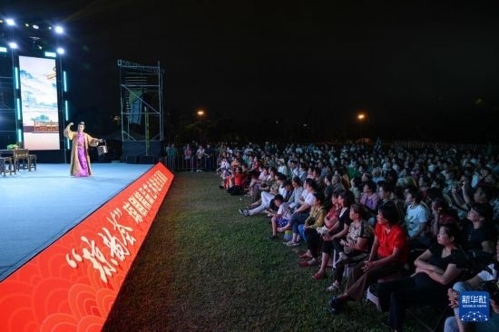 10月6日在海口市萬綠園拍攝的“瓊韻薈”瓊劇精品藝術進社區(qū)展演現(xiàn)場。