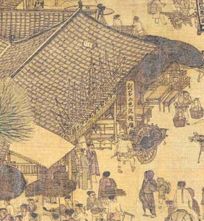 以“汴京富麗天下無(wú)”來(lái)概括北宋東京的繁榮與富庶,并不過(guò)分。《東京夢(mèng)華錄》曾記載,在東京城的酒店中二人對(duì)坐飲酒,就需要“注碗一副、盤(pán)盞兩副、果菜碟各五片、水菜碗三五只”。而東京城中,匯聚了百工精巧,無(wú)所不有。這些在大相國(guó)寺中有集中的體現(xiàn)。大相國(guó)寺是東京城內(nèi)著名的佛教大寺,又是東京城內(nèi)“萬(wàn)姓交易”的場(chǎng)所,每月開(kāi)放8次,各種日常用品、金銀首飾以至?xí)?、文房筆墨,都可以在寺中購(gòu)得。李清照在《金石錄·后序》中曾回憶北宋末年她和趙明誠(chéng)從大相國(guó)寺購(gòu)買碑文后,回到家中展玩對(duì)讀??梢?jiàn),以大相國(guó)寺為中心形成了一個(gè)繁華的商業(yè)區(qū),成為官民士庶出入頻繁的活動(dòng)中心,拜佛上香、觀光娛樂(lè)、廟會(huì)集市、時(shí)令游賞,無(wú)所不有。