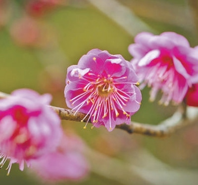 古都南京的早春,總是從東郊梅花山的枝頭開始綻放。風還透著寒意,但幾朵“粉紅朱砂”卻悄然掛上枝頭,在風中輕輕搖曳。