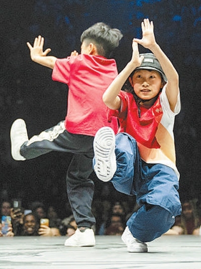街舞舞種風格各異。Breaking(霹靂舞)地板動作高難而充滿力量感,Locking(鎖舞)因瞬間停頓而節(jié)奏感強,Popping(震感舞)注重肌肉收放,Hip-Hop(嘻哈舞)則更強調自由隨性的表達和對音樂的獨特詮釋。賽場上,小舞者舞蹈動作收放自如,展現出高超的身體協調能力、控制能力。他們的精彩“卡點”,在隨機播放音樂即興發(fā)揮的Battle(斗舞)中更是成為吸睛亮點。但做到這些還不夠,正如網友所說:“最后拼的都是文化底蘊?!弊屩袊倌暝趯﹃噰H“技術天花板”時脫穎而出的,是他們超越了炫酷的淺表追求,舞出了可貴的文化情懷。