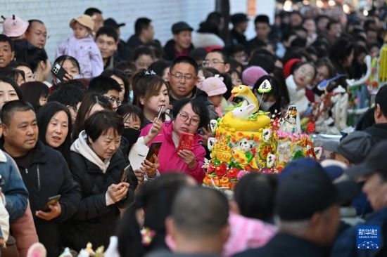 當(dāng)日是農(nóng)歷二月十九,每年農(nóng)歷這一天,呂梁山區(qū)的山西省嵐縣嵐城鎮(zhèn)的鄉(xiāng)親們都會將精心制作的面塑擺上街頭進(jìn)行展示,形成一條百米長的“面塑長河”。這些面塑作品造型各異、精巧絕倫,寄托了人們對美好生活的期盼。