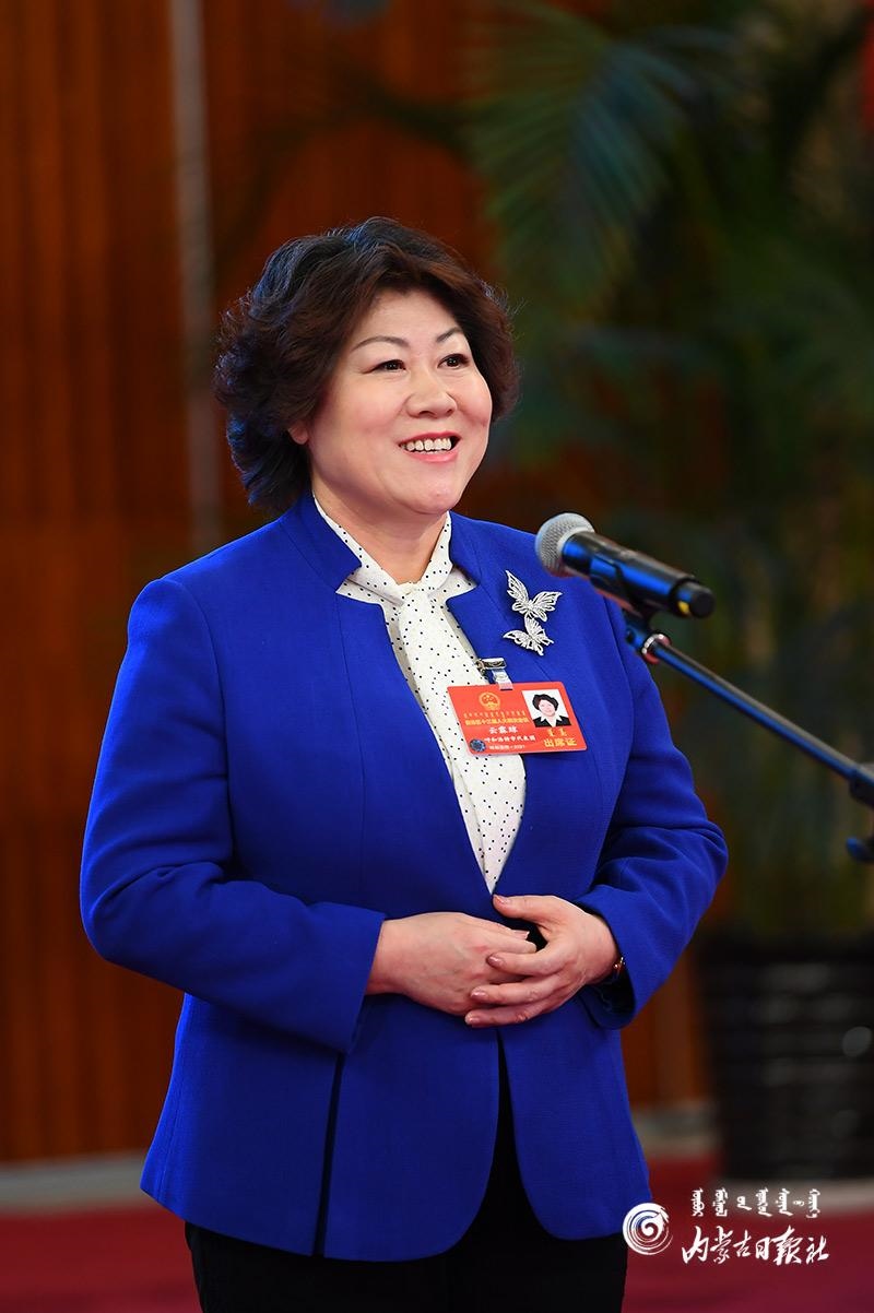 人大代表云霖瓊答記者問。內(nèi)蒙古日報(bào)記者 金泉 攝