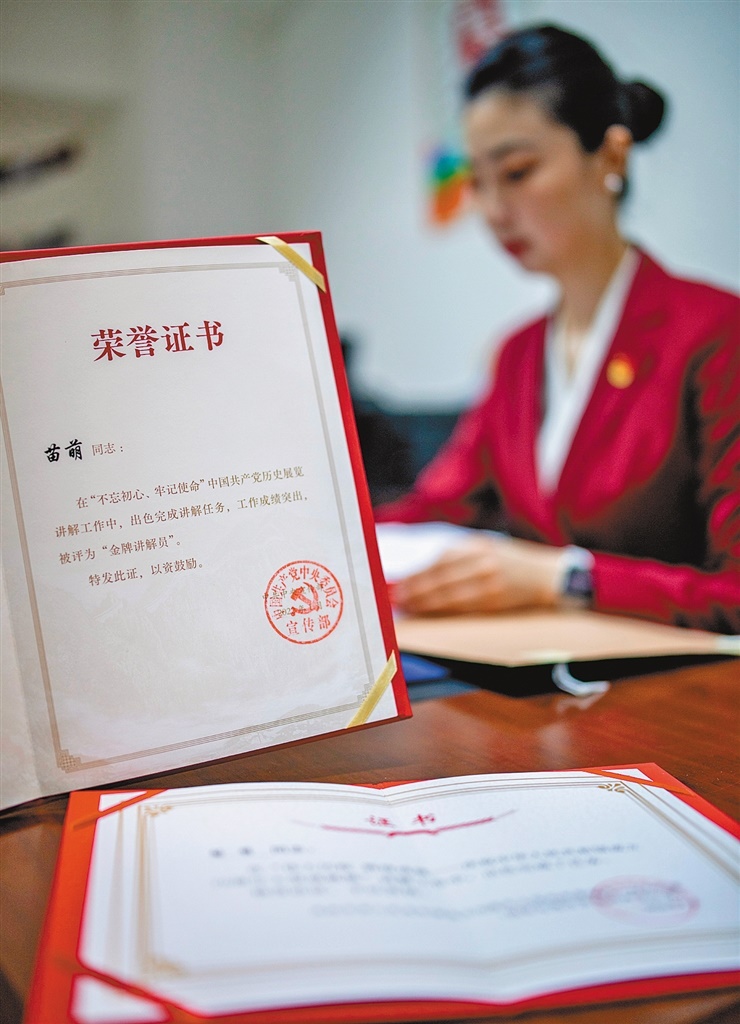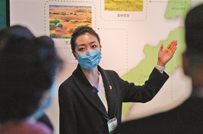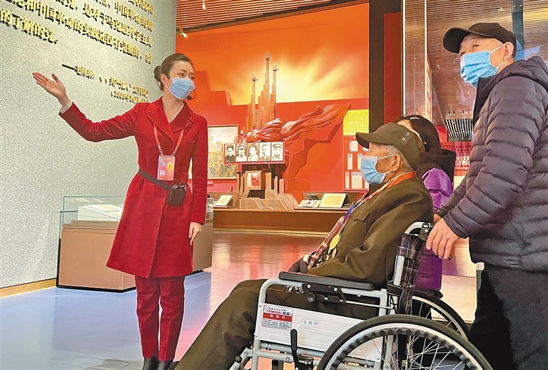 在中國共產(chǎn)黨歷史展覽館為觀眾講解。