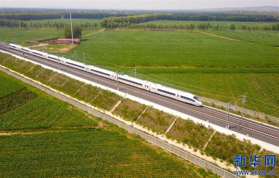 一列“和諧號(hào)”動(dòng)車組列車行駛在內(nèi)蒙古赤峰市元寶山區(qū)的田野間(6月30日攝,無(wú)人機(jī)照片)。 當(dāng)日,隨著G8382次“和諧號(hào)”動(dòng)車組列車從內(nèi)蒙古赤峰站緩緩駛出,喀左至赤峰高鐵全線開(kāi)通運(yùn)營(yíng)。該線經(jīng)喀左站與京沈高鐵接軌,內(nèi)蒙古赤峰地區(qū)由此接入全國(guó)高鐵網(wǎng)。 新華社記者 彭源 攝 -